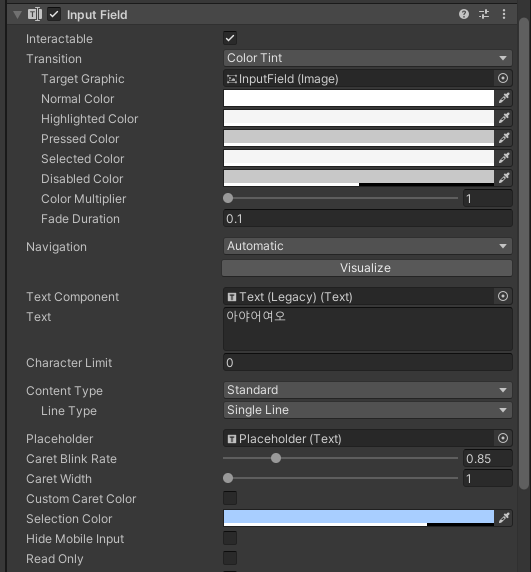 InputField에서 사용하는 텍스트 컴포넌트 입니다.