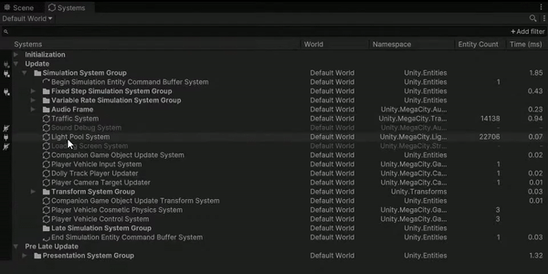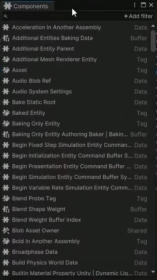 - ECS 구축을 위해 작성한 모든 DOTS 컴포넌트를 목록으로 확인할 수 있는 창