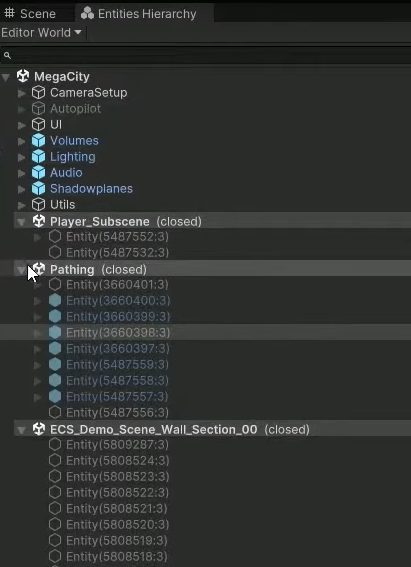 - 유니티 ECS는 병렬 처리를 위해 SubScene으로 나누어져 있습니다.
