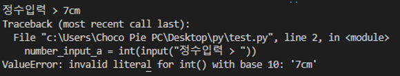 정수로 변환할 수 없는 문자열을 입력하였습니다.