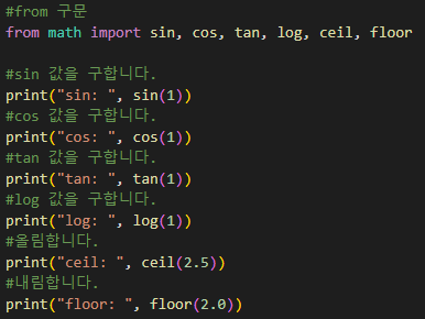 math 모듈의 경우 수학과 관련된 기능을 가지고 있습니다.