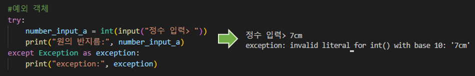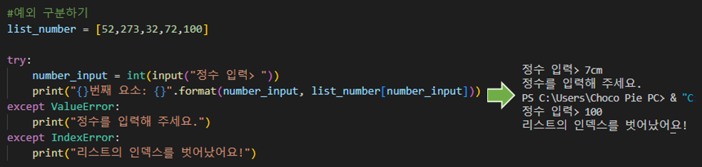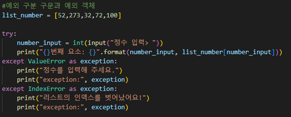 예외 객체를 사용하면 except 구문을 if 조건문처럼 사용해서 예외를 구분할 수 있습니다.