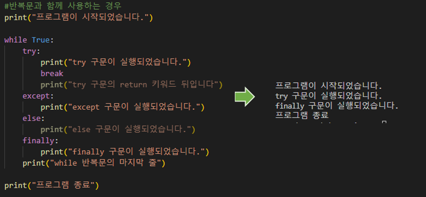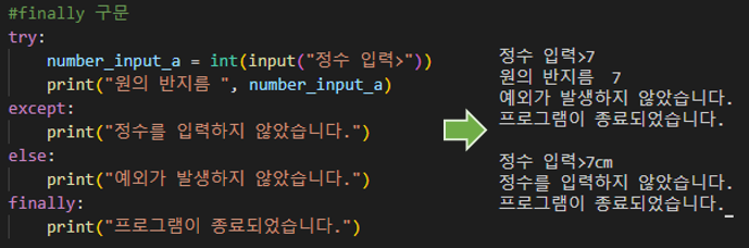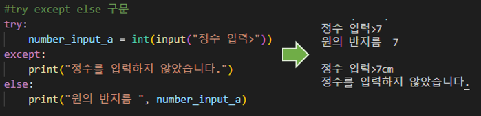 - else 구문은 반드시 except 구문 뒤에 사용해야 합니다.