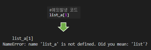 "NameError: name 'list_a' is not defined" 라는 예외는 list_a 라는 이름을 가진 것이 정의되지 않았다는 의미 이므로