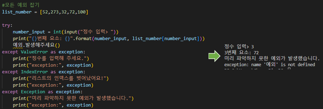 예외 처리 구문에서 가장 마지막에 사용할 수 있는 구문입니다.