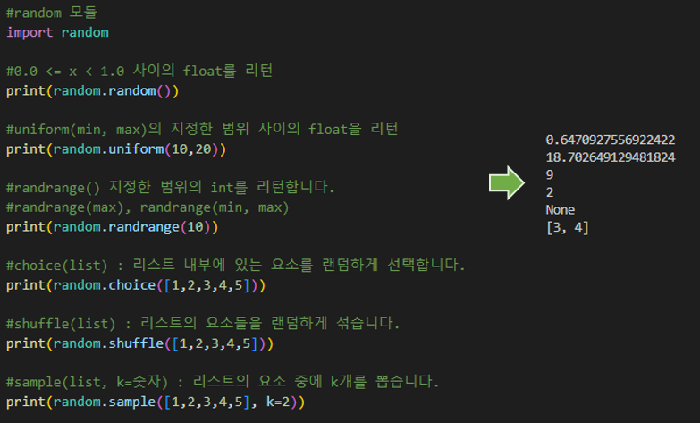 랜덤한 값을 생성할 때 사용하는 모듈입니다.