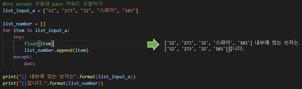 try except 구문으로 감싸고 예외가 발생하지 않는 경우에만 append 하도록 하는 코드입니다.