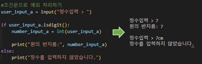 코드와 같이 조건문을 이용하여 예외를 처리할 수 있습니다.