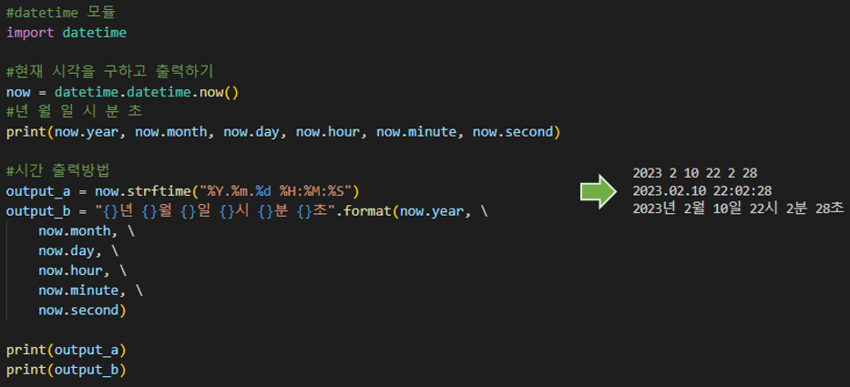 time 모듈로도 날짜와 관련된 처리를 할 수 있지만, 그런 처리는 datetime 모듈을 더 많이 사용합니다.
