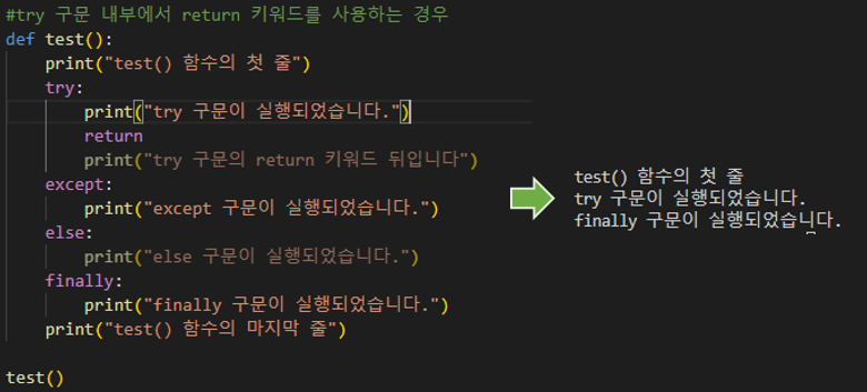 try 구문 내부에서 return 키워드를 사용하는 경우